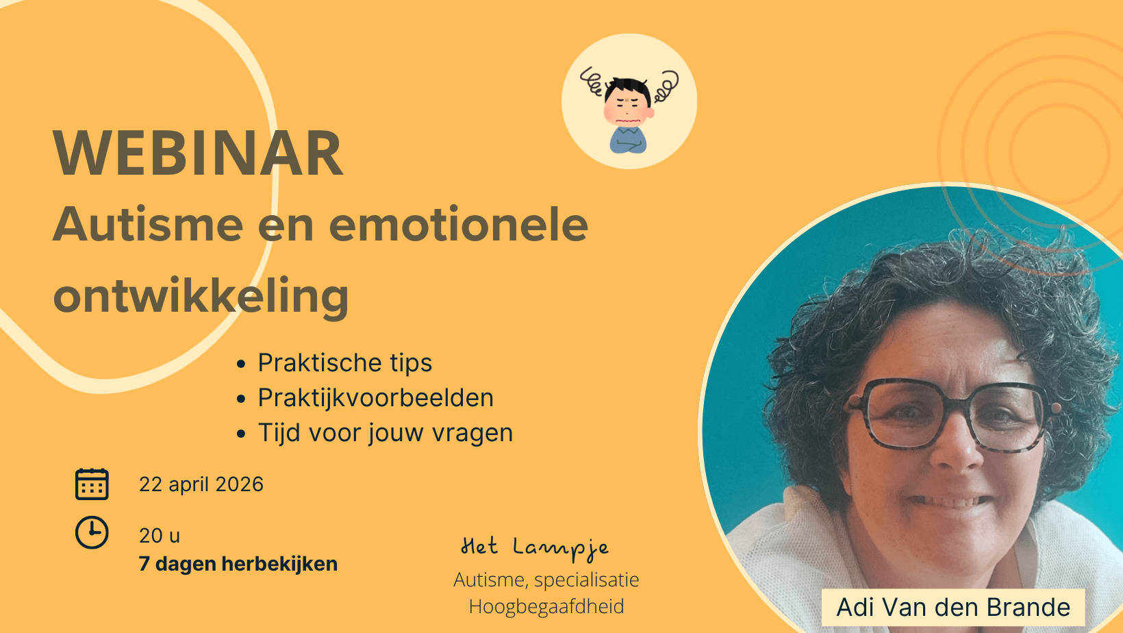 Ik heb al meer dan 5 webinars gevolgd bij het Lampje en ze geven mij meer inzicht in autisme en tips in omgaan met wat eerst vreemd gedrag leek te zijn. Ik voel me begrepen in Adi's antwoorden op mijn vragen. Een aanrader!